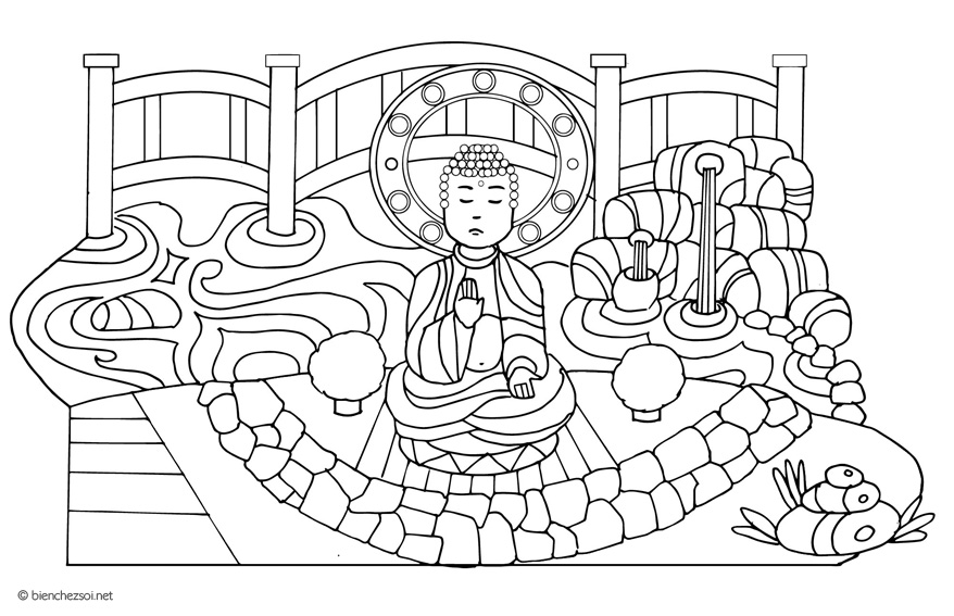 Durga est une grande déesse de la tradition hindoue, qui protège l'humanité du démon. Réputée inaccessible, c'est une guerrière infaillible qui n'a peur de rien. Ses bras sont tous dotés d'une arme redoutable. Elle est toujours accompagnée d'un tigre, symbole de courage. Gardez vous aussi calme et courage en coloriant cette inspirante divinité.